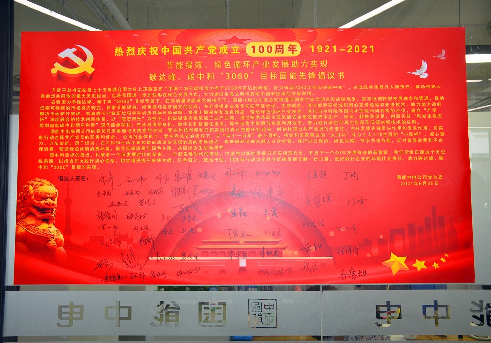 作為能源環(huán)保領(lǐng)域有知名影響力和行業(yè)引領(lǐng)性的企業(yè),國能中電積極踐行國家“碳中和”生態(tài)戰(zhàn)略,近年來大力發(fā)展生物質(zhì)能、風(fēng)光生物質(zhì)制儲氫一體化等清潔能源項(xiàng)目,助力國家“3060” 目標(biāo)的實(shí)現(xiàn)。在建黨100周年的良好時(shí)機(jī),國能中電黨總支發(fā)起了黨員社會責(zé)任倡議,號召全體黨員及廣大員工以碳達(dá)峰、碳中和“3060”目標(biāo)為指引,夯實(shí)低碳轉(zhuǎn)型發(fā)展理念,推動綠色循環(huán)經(jīng)濟(jì)模式創(chuàng)新實(shí)踐,發(fā)揮企業(yè)多年來在節(jié)能環(huán)保、生物質(zhì)能、清潔能源等領(lǐng)域積淀的寶貴經(jīng)驗(yàn)和先進(jìn)技術(shù),踐行企業(yè)社會責(zé)任,推動綠色產(chǎn)業(yè)發(fā)展,助力碳達(dá)峰、碳中和“3060”目標(biāo)的實(shí)現(xiàn)。