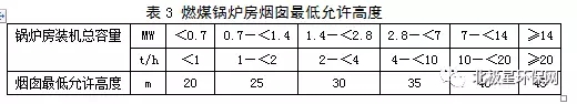 3、每個燃煤鍋爐房只能設一根煙囪,煙囪高度應根據鍋爐房裝機總容量,按表3規定執行,燃油、燃氣鍋爐煙囪不低于8米,鍋爐煙囪的具體高度按批復的環境影響評價文件確定。新建鍋爐房的煙囪周圍半徑200米距離內有建筑物時,其煙囪還應高出最高建筑物3米以上。